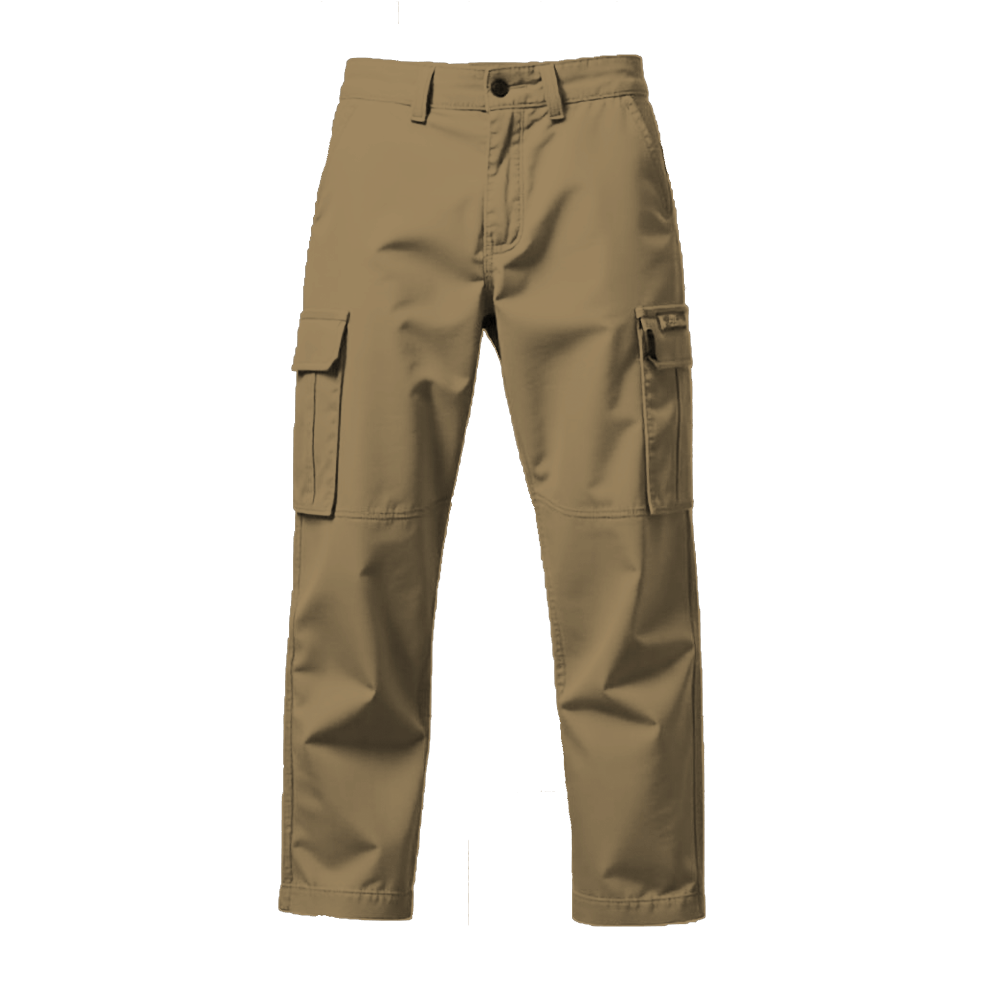 - Diseño: Pantalón largo con múltiples bolsillos, cierre de botón y cremallera con tapeta, además de trabillas para el cinturón en la cintura y goma elástica trasera para un mejor ajuste y comodidad.
